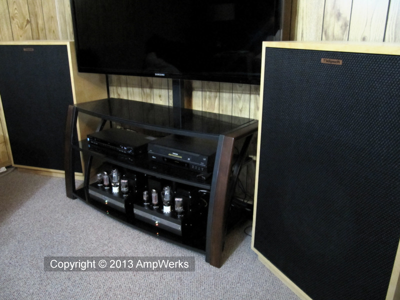 Here are the finished AA334s happily powering our Klipsch Cornwall II speakers.